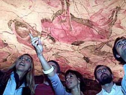 Interior de la neocueva de Altamira, con las pinturas en el techo.