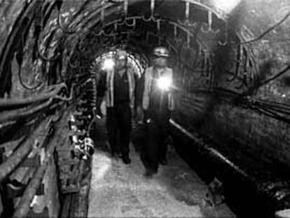 Dos miembros de la Unidad de Subsuelo del Cuerpo Nacional de Policía patrullan por una alcantarilla.
