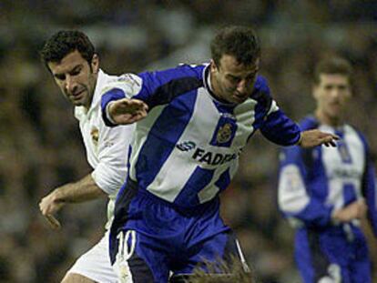 Final de la Copa del Rey de fútbol : Figo y Fran pugnan por el balón. PLANO MEDIO - ESCENA
