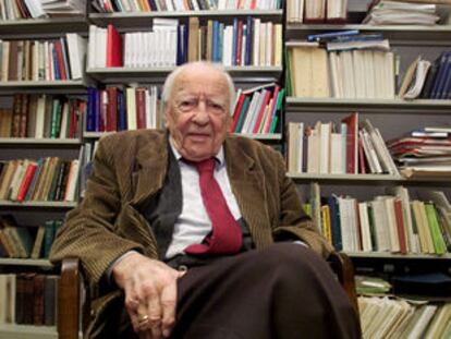 El filósofo Hans-Georg Gadamer sentado en su despacho de la Universidad, en febrero de 2000