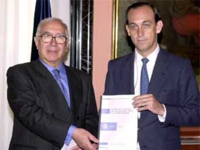 Manuel Lagares (izquierda) entrega a Estanislao Rodríguez-Ponga el informe para la reforma del IRPF