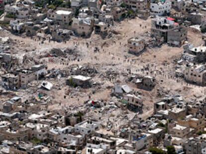 Campo de refugiados de Yenín, con numerosas viviendas destrozadas. VISTA AÉREA - PAISAJE URBANO