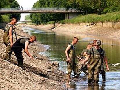 Un grupo de militares rastrea el canal Ródano-Rin en busca de las piezas sustraídas por Breitwieser