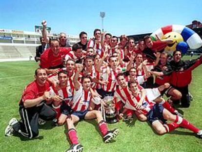 Juveniles: Jugadores y técnicos del Atlético de Madrid celebran el triunfo de la Liga de Campeones. PLANO GENERAL - ESCENA