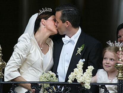 La princesa Marta Luisa besa a su marido en el balcón de la residencia real después de la boda