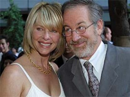 Steven Spielberg junto a su esposa, Kate Capshaw, posan antes de la proyección de la película