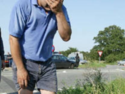 Un hombre expresa su dolor en el punto donde la policía británica investiga la desaparición de Holly y Jessica