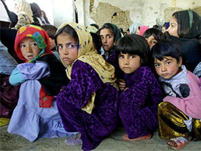 Niñas afganas, en su primer día de colegio tras la caída del régimen talibán.