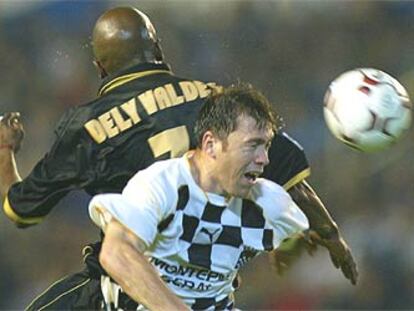 Dely Valdés intenta cabecear un balón ante Ávalos.