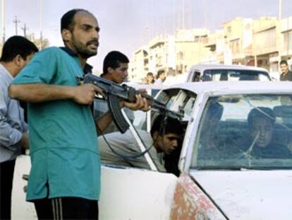 Un hombre apunta con un rifle a un sospechoso de robar un coche en Bagdad