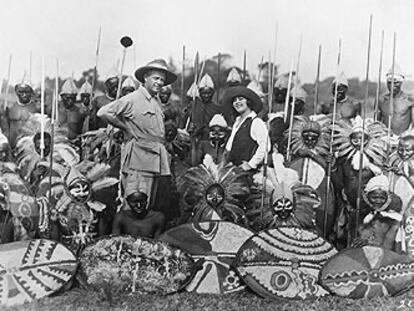 Martin y Osa Johnson, durante el rodaje del documental 'Simba' en 1928