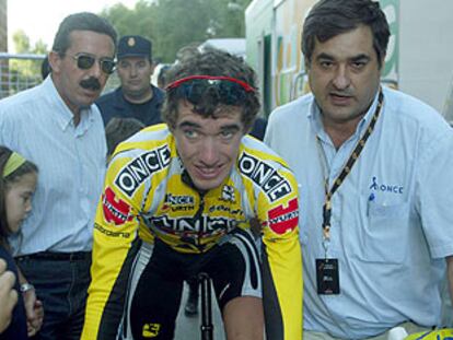 Manolo Saiz, el director del ONCE, junto al líder de la Vuelta, Isidro Nozal