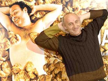 Paco Mir junto al cartel de su película <i>Lo mejor que le puede pasar a un cruasán</i>.