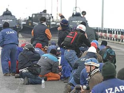 Trabajadores de los astilleros de Izar se enfrentan a la policía