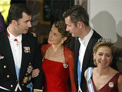 El Príncipe y Letizia Ortiz conversan con los duques de Palma