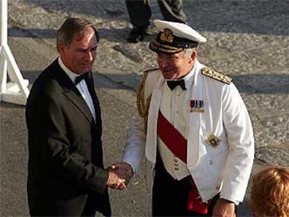 Geoff Hoon saluda en Gibraltar al almirante de la Marina británica