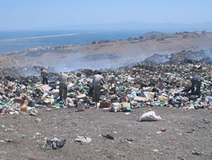 Inmigrantes que viven en el monte Gurugú, próximo a la frontera con Melilla, buscan comida en un vertedero cercano.