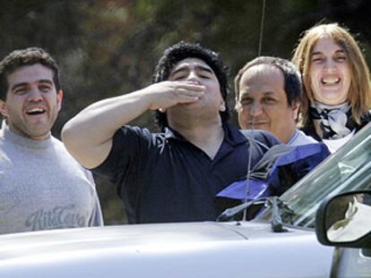 Maradona, al salir del hospital de Buenos Aires para viajar a Cuba.