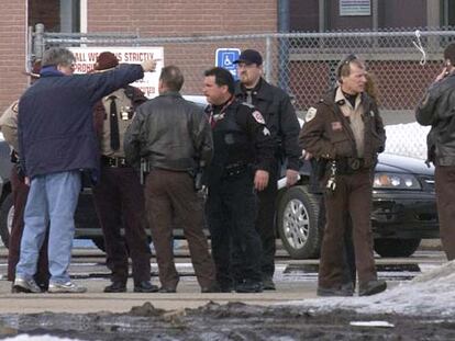 Varios policías reciben instrucciones en el instituto de Red Lake