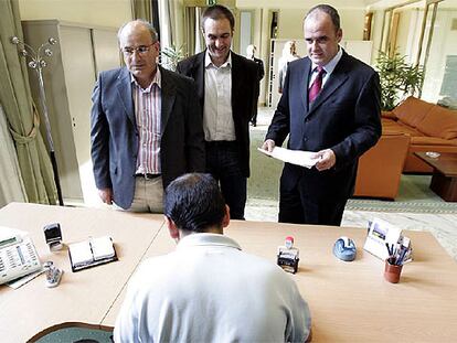 Antton Karrera, Unai Ziarreta y Joseba Egibar , en el registro de la Cámara