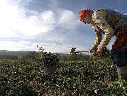 Una granjera polaca cosecha fresas