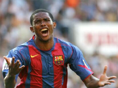 Eto'o celebra un gol marcado al Valencia, en mayo.