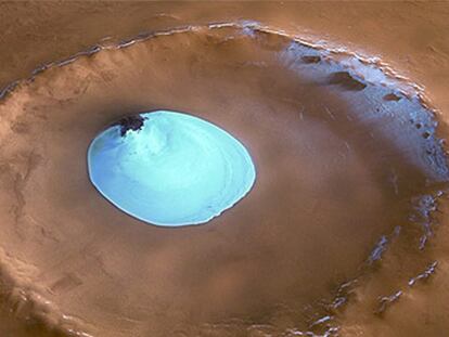 El trozo de hielo se encuentra sobre el suelo de un cráter en el polo norte del planeta