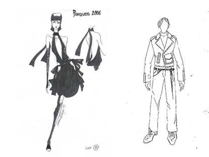 Boceto de la colección de Susana de Cangas y un modelo masculino diseñado por Amaya Arzuaga