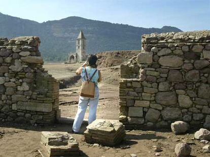 El trasvase de agua de Sau a Susqueda pone al descubierto la antigua población