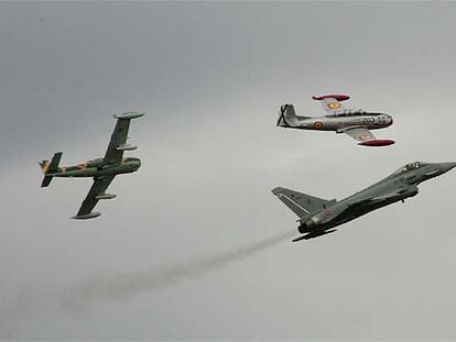 Espectáculo aéreo de dos aviones Saeta, junto a un Eurofighter