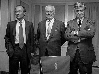 El presidente Rafael del Pino junto a su padre y el vicepresidente Santiago Bergareche