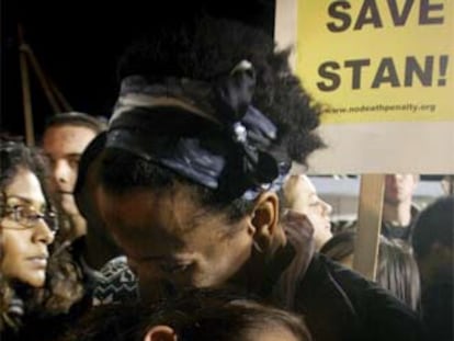 Dos mujeres se abrazan durante una vigilia tras la ejecución de Stanley T. Williams
