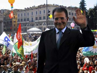 Romano Prodi saluda tras una marcha contra la política económica del Gobierno