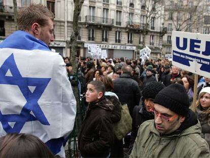 Un joven envuelto en una bandera de Israel, durante la manifestación antirracista en París