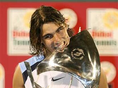 Rafael Nadal, con el trofeo conquistado en Dubai