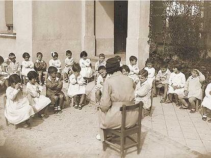 Una maestra con sus alumnas en la época de la II República