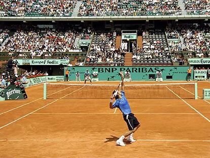 Roger Federer ejecuta un saque durante su partido contra Diego Hartfield