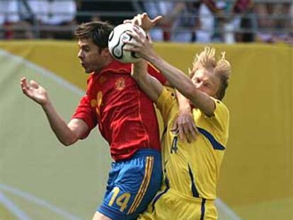 El delantero sueco Larsson controla el balón en la sesión de entrenamiento en Bremen