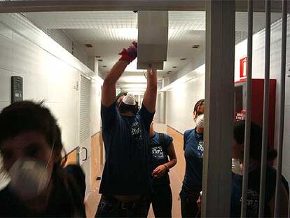 Jóvenes en el interior del futuro centro de detención de extranjeros