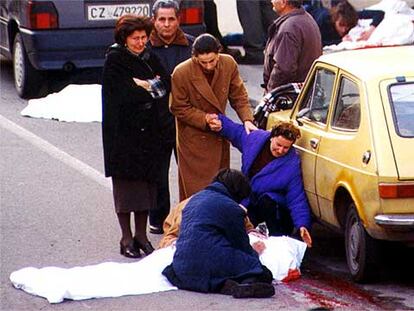 Familiares de Salvatore Valente, jefe de la Ndrangheta (Mafia calabresa), lloran sobre su cadáver en febrero de 2000
