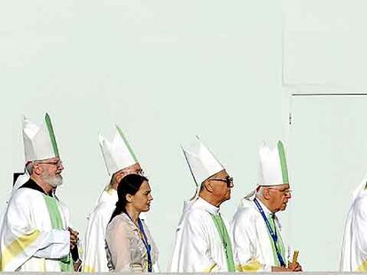 Cardenales y obispos, en el altar donde Benedicto XVI celebró la misa