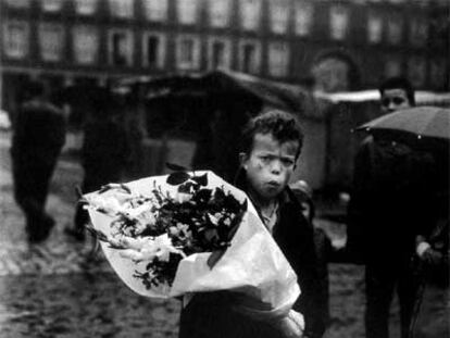 Foto de Gabriel Cualladó de un niño en la plaza Mayor, de Madrid, en 1959