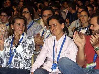 La presidenta saliente de Nuevas Generaciones, Carmen Fúnez y el candidato Nacho Uriarte