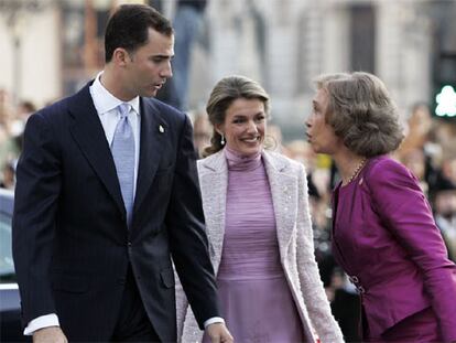 Los príncipes de Asturias, don Felipe y doña Letizia, charlan con la reina Sofía
