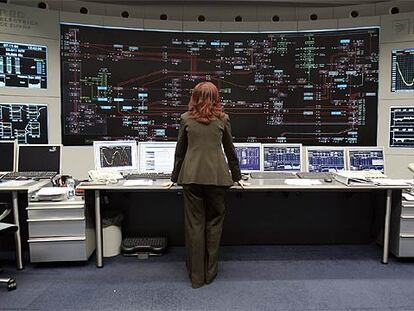 La jefa de turno supervisa el panel principal del Centro de Control Eléctrico