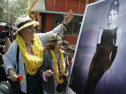 El escritor francés Dominique Lapierre y su mujer inauguran el centro financiado con los 800.000 dólares donados por el traje de la actriz