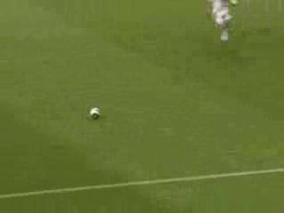 Sergio Ramos remata de cabeza en el área pequeña un gran centro de falta de Beckham desde la banda derecha.