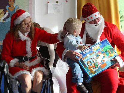 Uno de los niños que vive en el centro penitenciario Madrid VI recibe un regalo de Papá y Mamá Noel