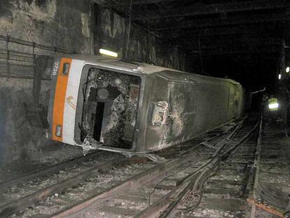 Imagen del convoy descarrilado en la línea 1 del metro de Valencia el 3 de julio de 2006