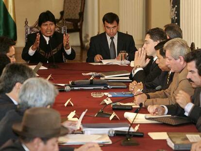 El presidente de Bolivia, Evo Morales, en una reunión con los gobernadores